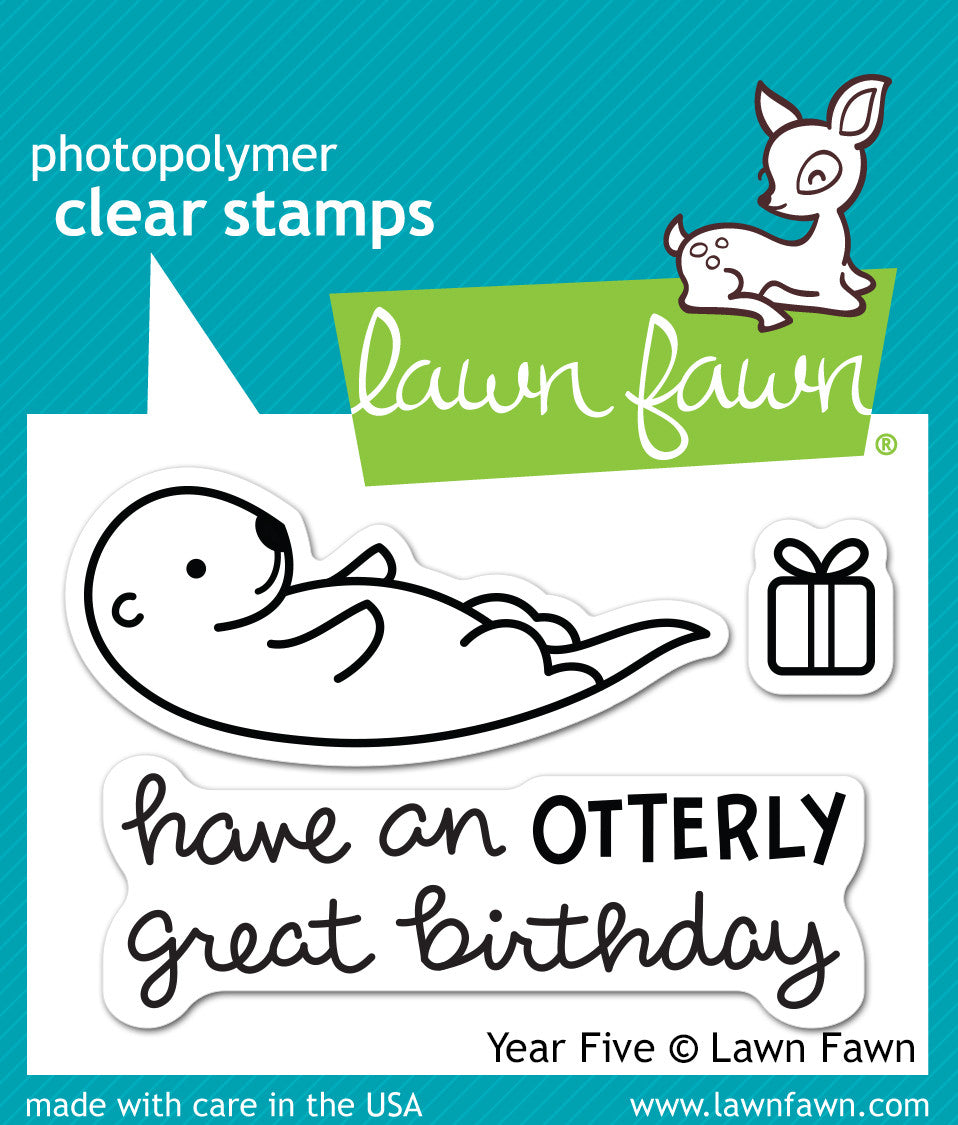 Have an otterly great birthday with this cute otter, gift, and matching sentiment! This collection of three clear stamps was created to celebrate Lawn Fawn's fifth birthday.