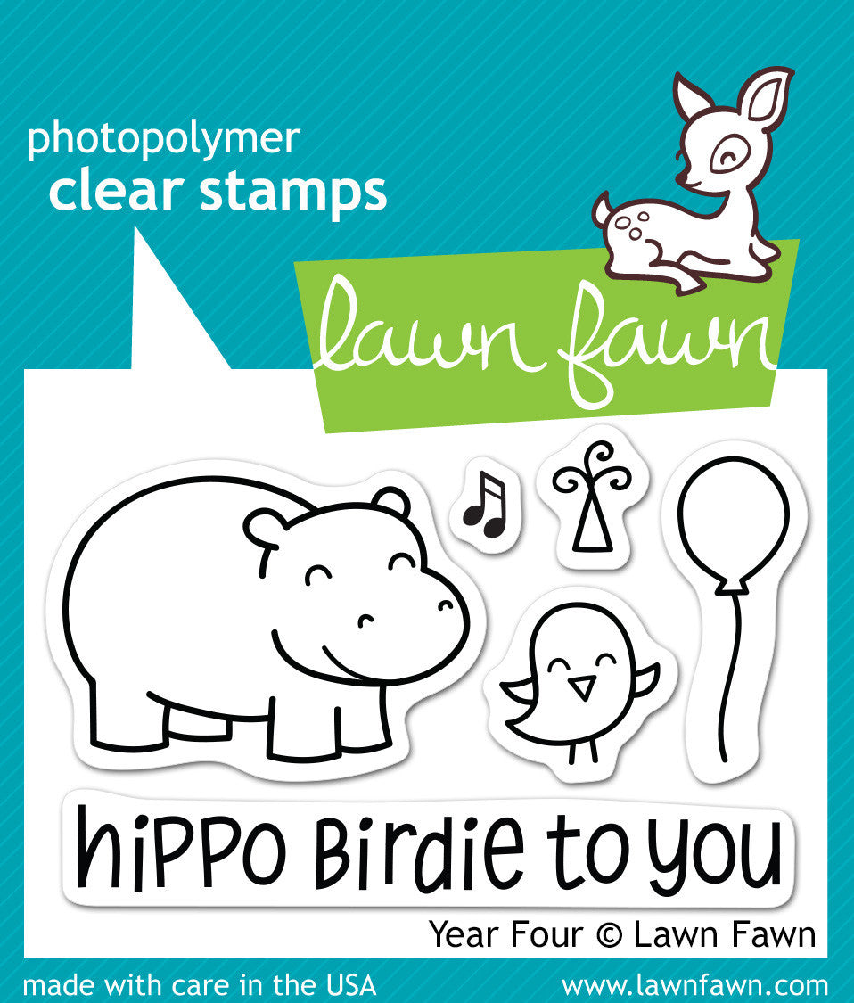 Nothing says happy birthday like a hippo and a birdie! This collection of six clear stamps was created to celebrate Lawn Fawn's fourth birthday.
