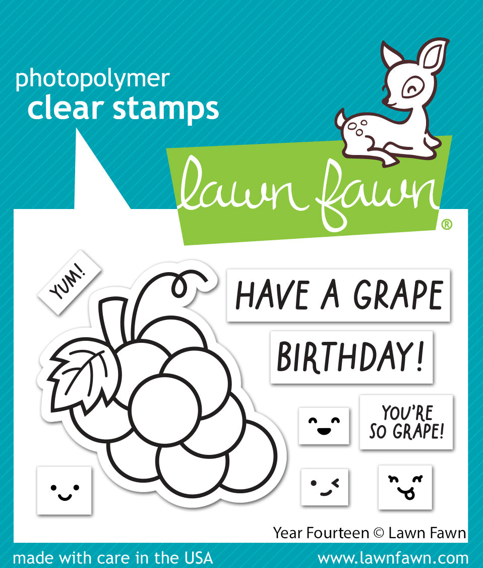 We are so grape-ful you’re celebrating 14 years of Lawn Fawn fun with us! This adorable mini stamp set will be a bunch of fun for your next birthday project!