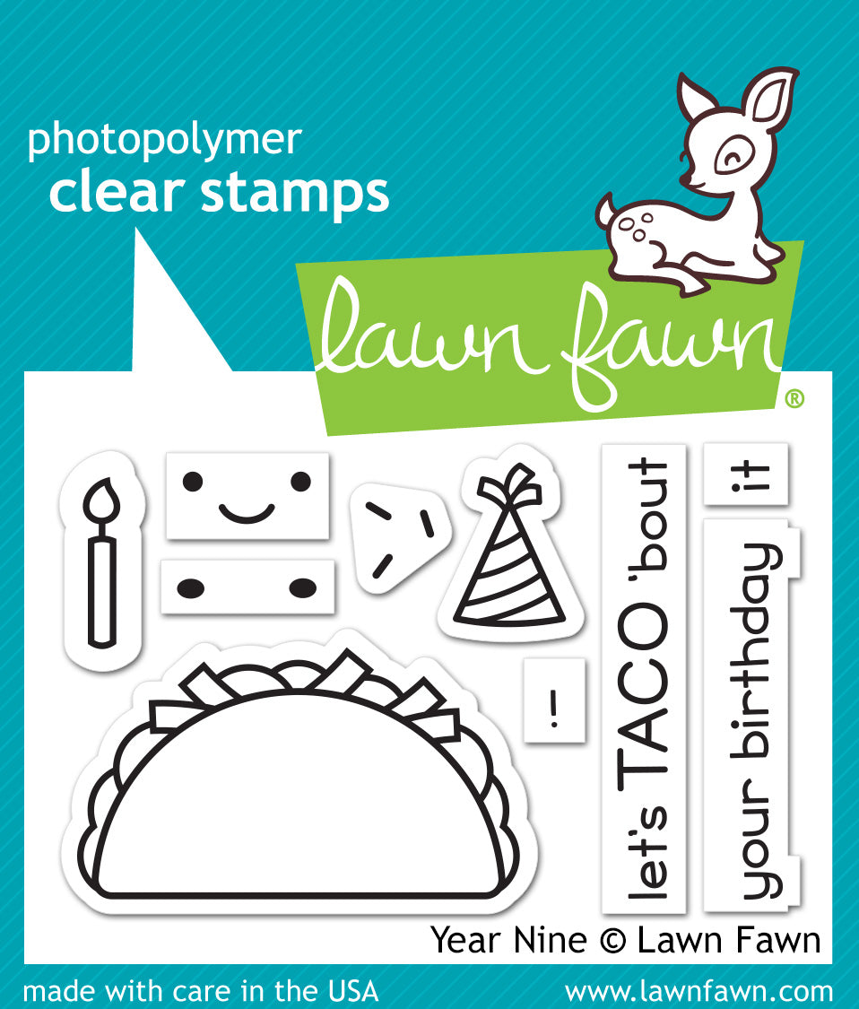 Let’s taco ‘bout how cute this stamp set is! This little taco was created to celebrate Lawn Fawn’s ninth birthday! Woohoo!
