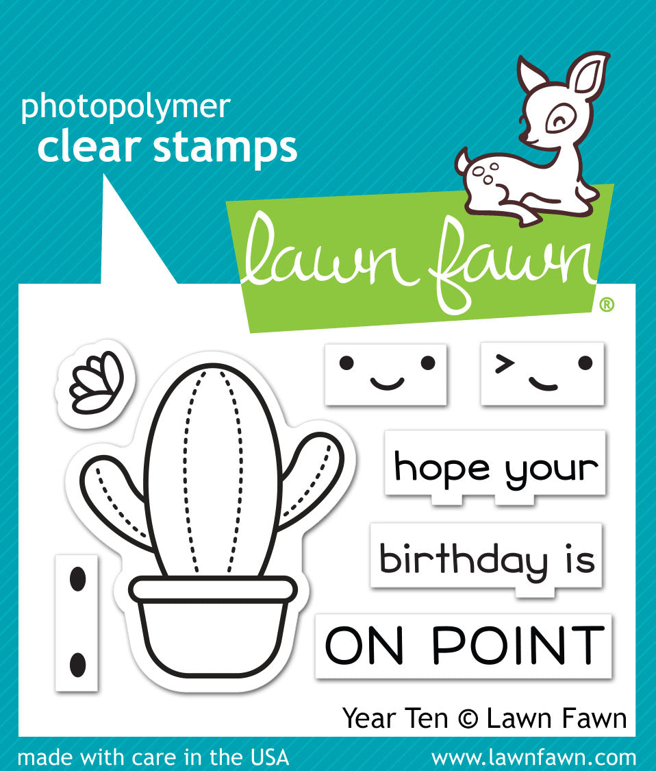 This mini stamp set is truly on point! This happy cactus was created to celebrate Lawn Fawn’s tenth birthday. Yay!